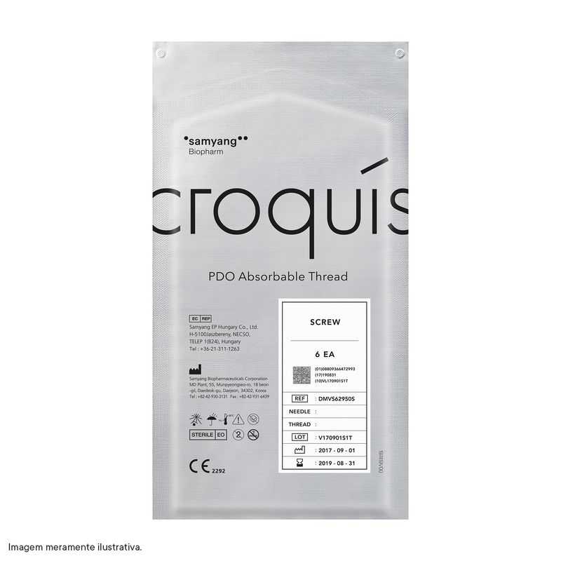 Os fios Croquís Screw são fios de PDO (Polidioxanona) com formato espiral (parafuso), indicados para melhorar temporariamente o envelhecimento facial por meio de lifting ou fixação de tecido, onde o uso de preenchedores e bioestimuladores não são recomendados.